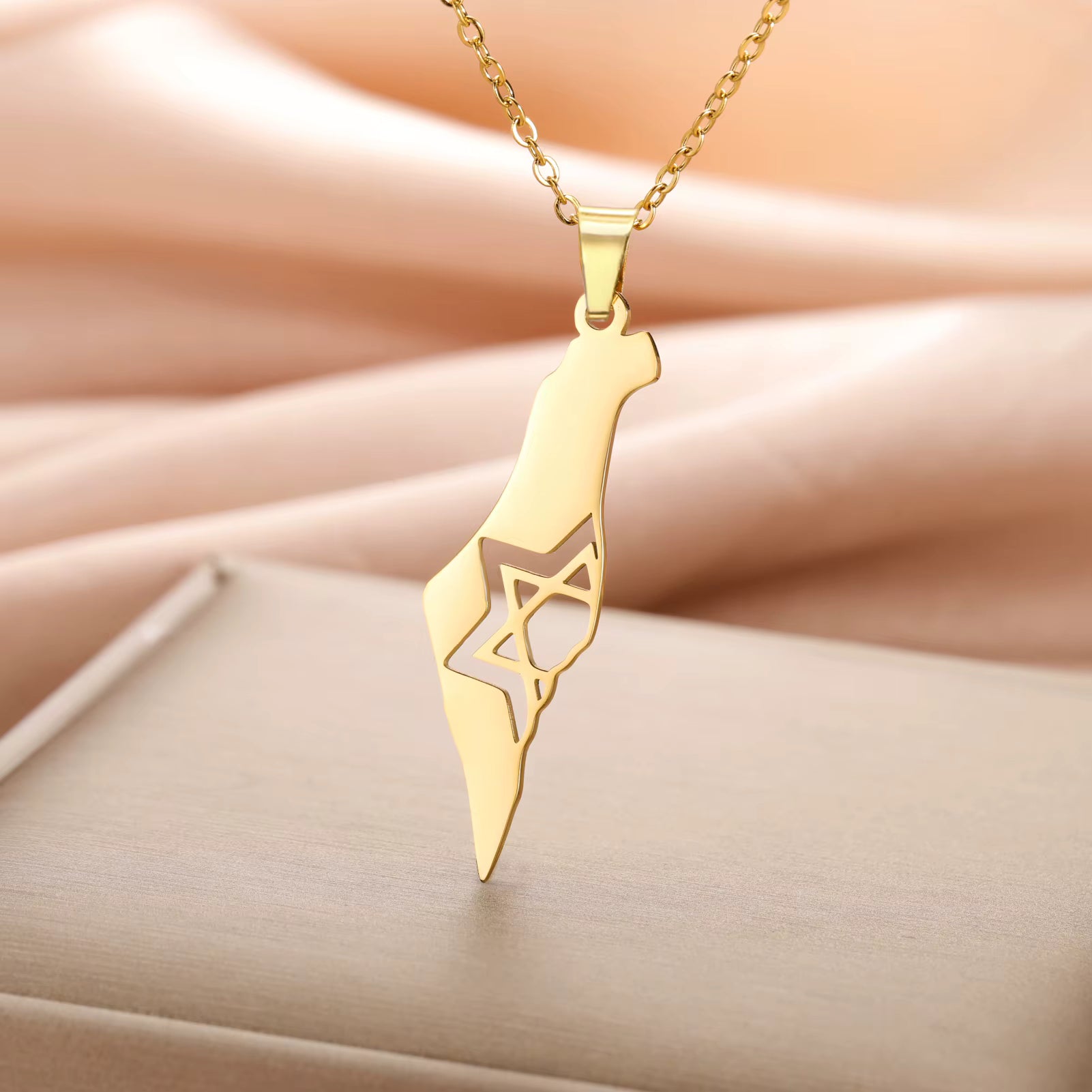 Ce collier carte d’Israël et étoile de David ne se contente pas d’être beau : il raconte une histoire.